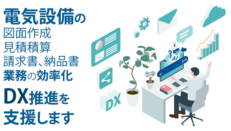図面から電気器具、配線データを自動で拾い出し、数秒で見積データを作成します。事務作業を劇的に改善することができます。